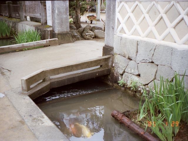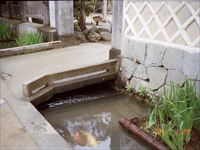 どこかのお宅の石橋を分捕り、鯉を眺めてみます。