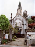 「津和野カトリック教会」で、1931年に岡崎祐次郎(パウロ・ネーベルの帰化後の日本語名)が、乙女峠のキリシタン迫害の悲劇を繰り返さないよう願って建てた教会です。
