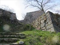 この場所には、四重の副天守閣をもつ五重の天守閣があったとされています。
