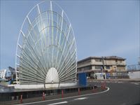 JR米子駅の駅前広場には、天に向けて駆け登るSLのモニュメントがあります。