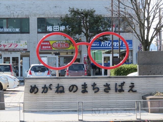 鯖江駅を降りても、目の前にはメガネのオブジェがあります。