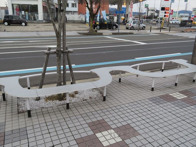 そして通りを歩いていると、そこで出くわすベンチもメガネの形をしています。