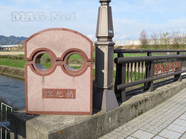 それは「枇杷橋」の文字を表す部分が、メガネの形にくり抜かれているものです。