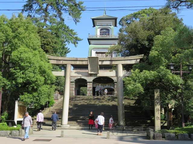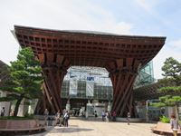 武蔵町から香林坊方向に歩いて行くと、見慣れない形の門をもつ「尾山神社」があります。
