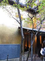 中には金箔を使った器を並べている店の中庭に、壁に金箔で覆った蔵があります。