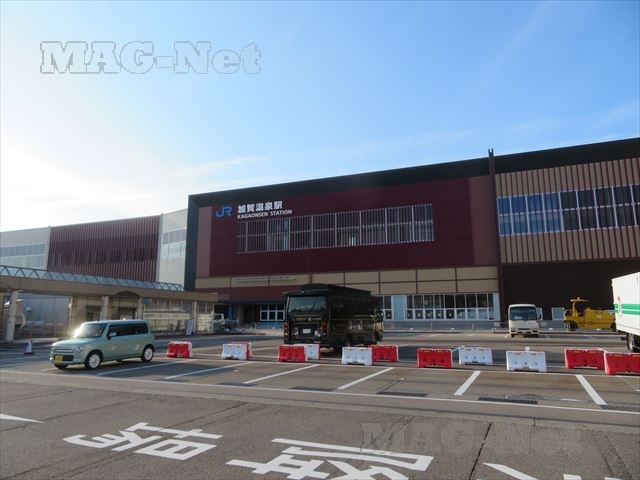 「加賀温泉駅」は駅舎と駅前ロータリー、それに周囲の店舗が大改装中です。