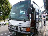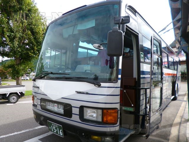 大町温泉郷、日向山高原を越えて、40分のバスの旅です。