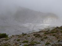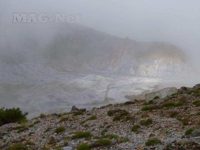 硫黄のガスの臭いが立ち込み、それが霧と重なって少し先しか見えません。