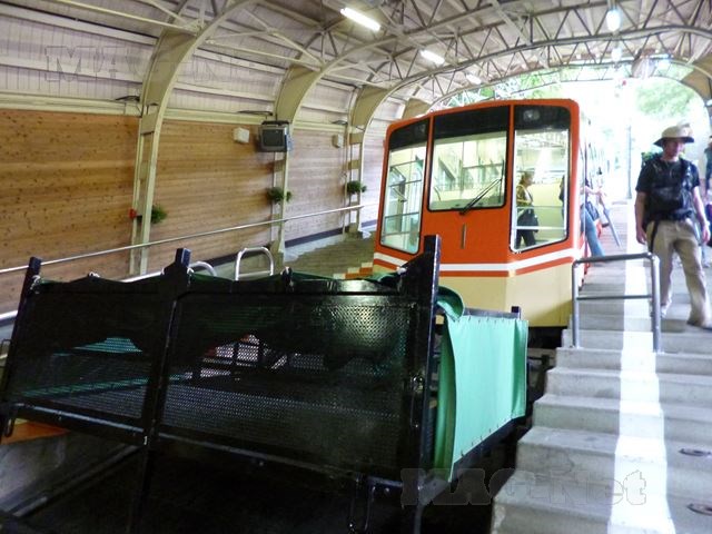 こちらは地上を走るケーブルカーですが、先頭に貨車を連結しています。