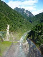 ダムから散る水は、川底を傷めないように霧状にされて、放水されます。