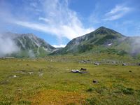幸い雨は降っていないのですが、台風崩れの熱帯低気圧が近づいてきているだけあって、山の頂はガスがかかり雲行きが怪しい状態です。