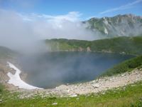 対岸の「みくりが池温泉」の山小屋で、はやくも一休みです。