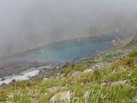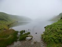 池の周りで、霧が晴れるのを待ちます。