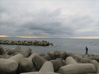 そしてその土地の真ん中には、海岸に消波ブロックとして置かれるテトラポットが飾られています。