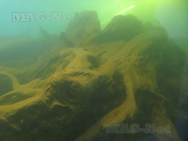 博物館では水中にそのままの姿で残っている様子を、水槽の地下の窓から見ることができます。