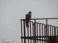 博物館を出ると、目の前に厳つそうな鳥が留まっています。