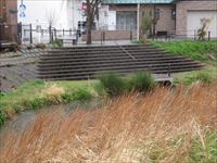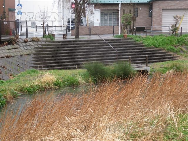 ここから川に降りることができるように、岸壁が階段状になっています。