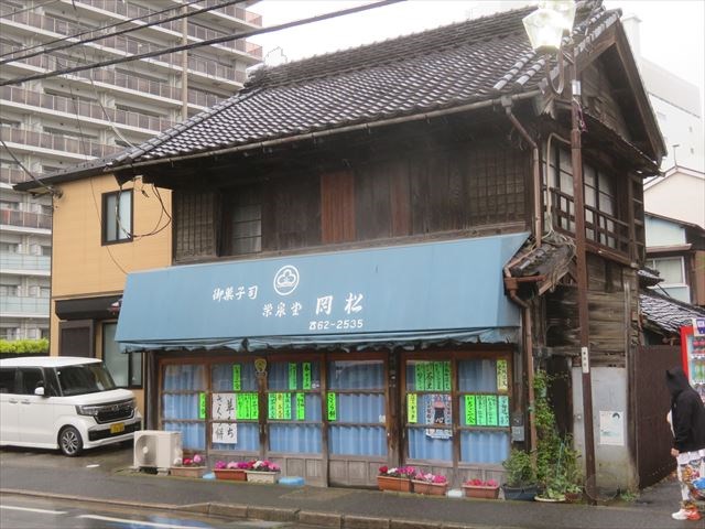 その道路の反対側には「栄泉堂岡松」があります。