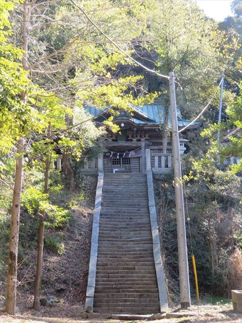 「鹿島神社」は、石段を上った山の中腹に建つ小さな神社です。