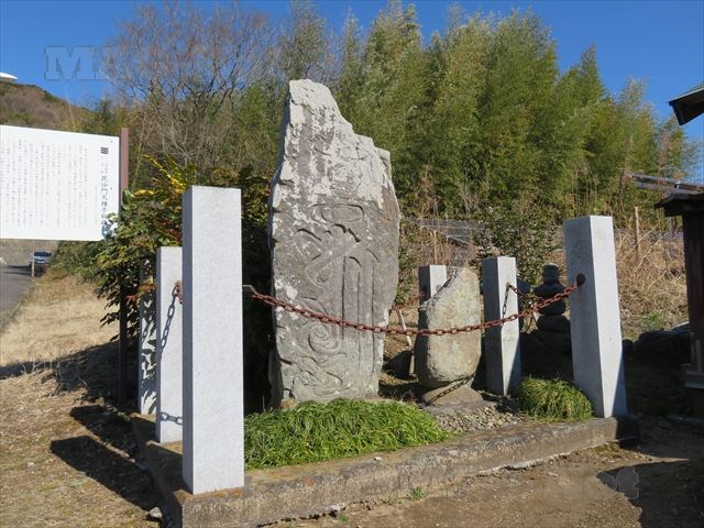 「毘沙門天種子板碑」で、鎌倉時代のものだということです。