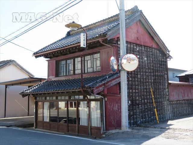 赤く塗られた壁が目を引く、昔ながらの建物です。