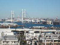 左にコスモワールドや赤レンガ倉庫、中央に山下公園、そして右手にはベイブリッジを見渡せます。
