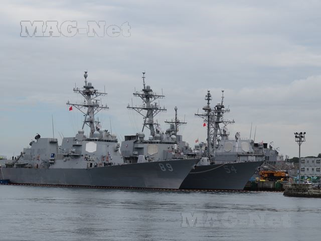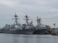 その先には、アメリカ海軍のイージス艦の「マスティン」と「カーティス・ウィルバー」、そしてその後ろにも数隻が並んで停泊しています。