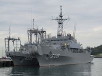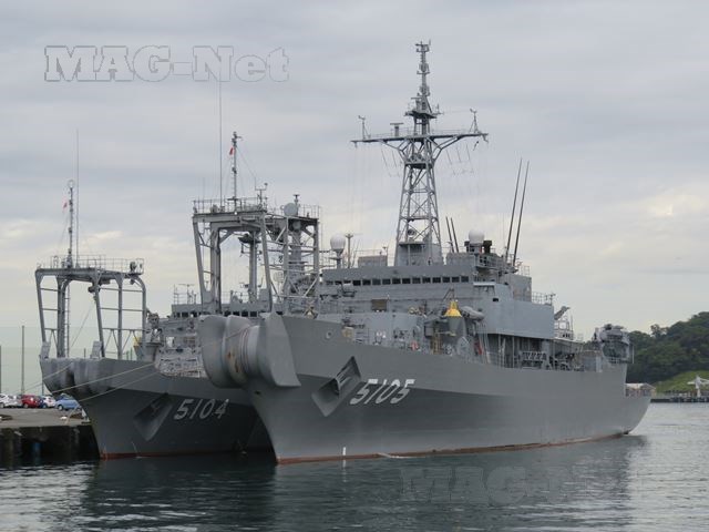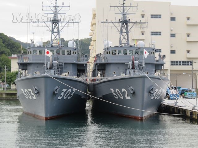 その次には、機雷除去のための掃海艦「つしま」と「はちじょう」も停泊しています。