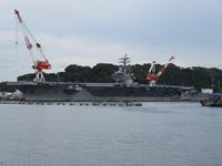 昨日入港したばかりのアメリカ軍空母の「ロナルド・レーガン」が、積み荷を降ろしているところです。