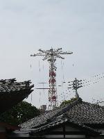 商店街の隙間から高くそびえる塔が、目に飛び込んできます。