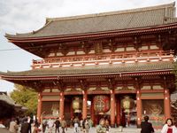お上りさんは、ここ浅草寺の入り口である雷門のところで写真を撮らなければならないと、私もはいチーズ!
