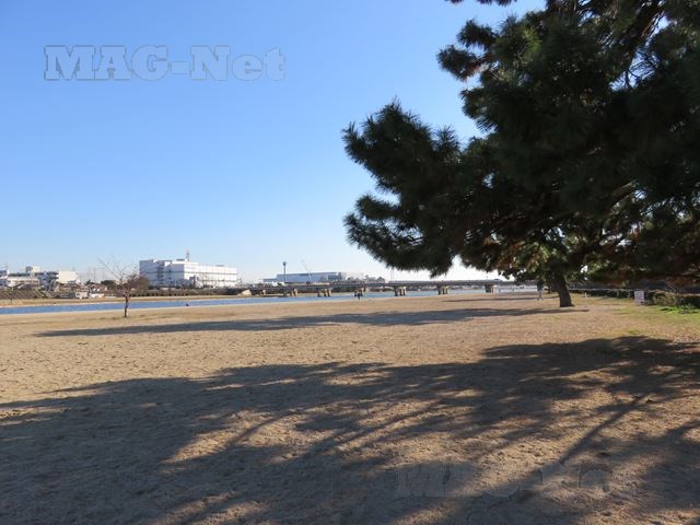 海に近いこの辺りは両岸に砂浜が広がり、松の木が並んでいます。