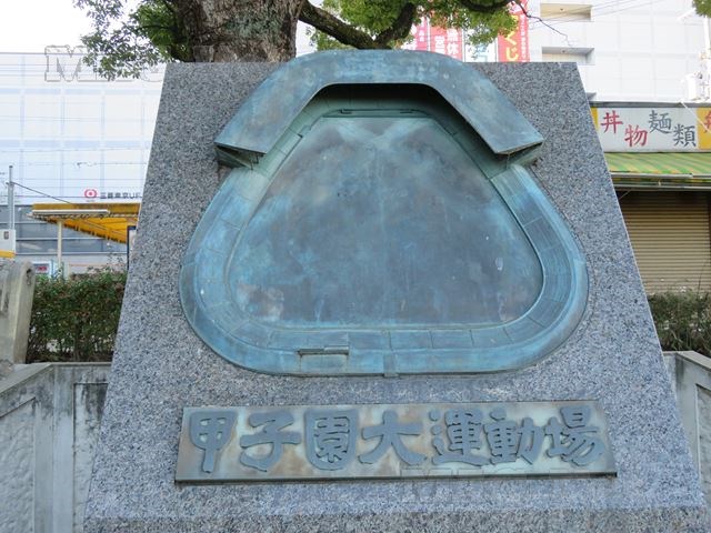 「阪神甲子園球場」から「甲子園駅」に延びる通りには、「甲子園大運動場」の石碑も建っています。