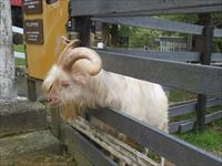 毛刈り会場の横では、立派な角を持ったヤギが飼育されています。