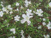 入ってまず目を引くのが、純白の花びらをもつユキモチソウです。