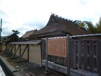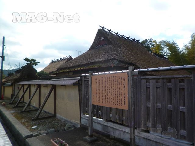 間口8間が割り当てられた家々は、茅葺の屋根を今に伝えています。