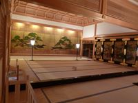 上段の間には、江戸時代初期の狩野派絵師が描いた屏風絵を障壁画として使う、贅沢なものです。