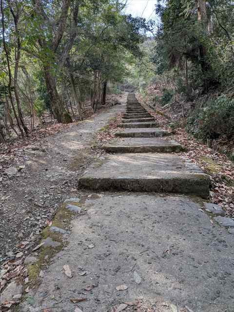 ほぼ山を登り切ったところから先は、さらに急な石段になります。