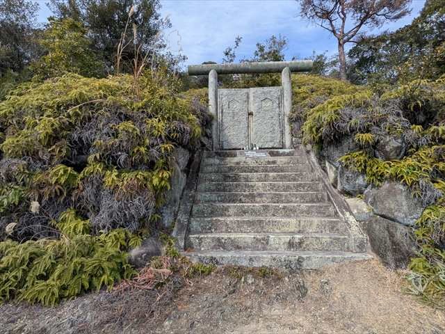 脇にぐるりと回る山道があり、山の一番高いところに小さな石の祠を覗くことができたのでした。