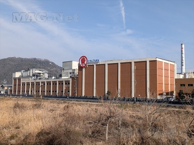 川の東側には、大きなヒガシマル醤油の工場があります。