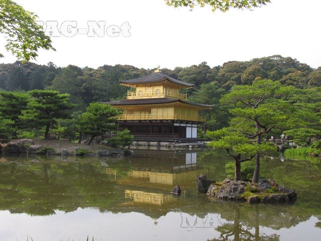 鏡湖池の向こうに見えるまばゆいほどの金色の建物が鏡のような水面に移る姿は、実にきれいなものです。