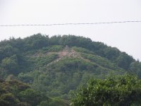大文字焼きの「大」の文字が描かれいる山肌を右手に見ながら、砂利の敷き詰められた金閣寺の山門を進んで行きます。