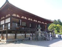 その先には中之坊、さらに先の左右に講堂と金堂が配置され、正面に本堂が構えています。