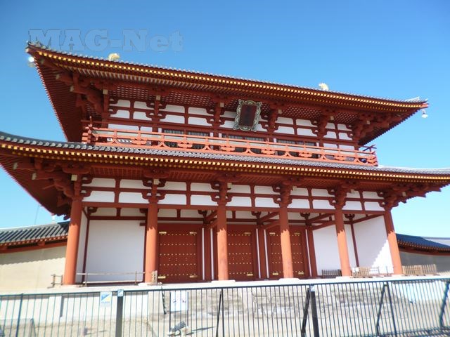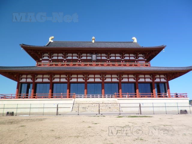 再建された「第1次大極殿」が、広い都跡地の広場の北の中央に構えています。