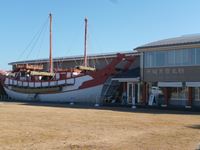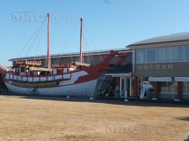 建物入口には遣唐使船が飾られています。