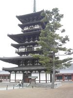 一見すると六重に見えるのですが、各層に裳階と呼ばれる小さな屋根を持つ三重の塔なのです。