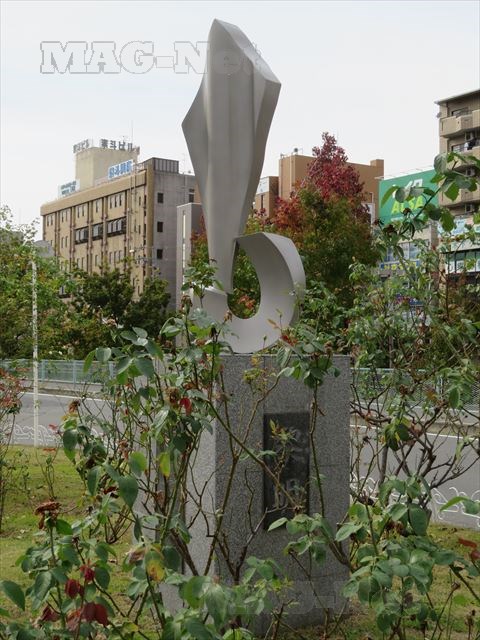 駅前にはいかりの形をした「寝屋川の船運碑」が建っています。