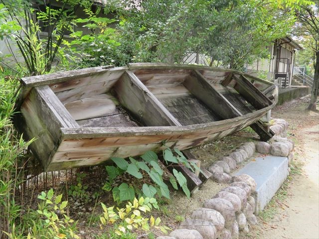 水路に降りて行くと、そこには「三枚板舟」が置かれています。