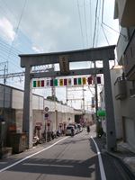 駅前の鳥居をくぐり、その先の提灯の並んだ入り口を進みます。