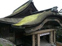 桧皮葺、建物全体を総黒漆塗りとした上に金の飾金具が散りばめられ、虹梁中央の蟇股の周囲には鳳凰や松・兎・牡丹の彫刻がなされています。